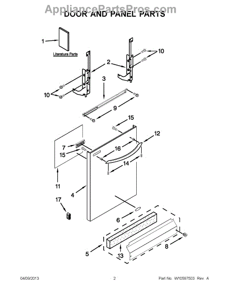 The Panel (BLK) is an OEM part for Whirlpool dishwashers. This black exterior panel is designed to provide a sleek and durable front surface for the dishwasher, enhancing its appearance and protecting internal components.