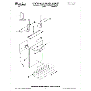 The Panel (BLK) is an OEM part for Whirlpool dishwashers. This black exterior panel is designed to provide a sleek and durable front surface for the dishwasher, enhancing its appearance and protecting internal components.