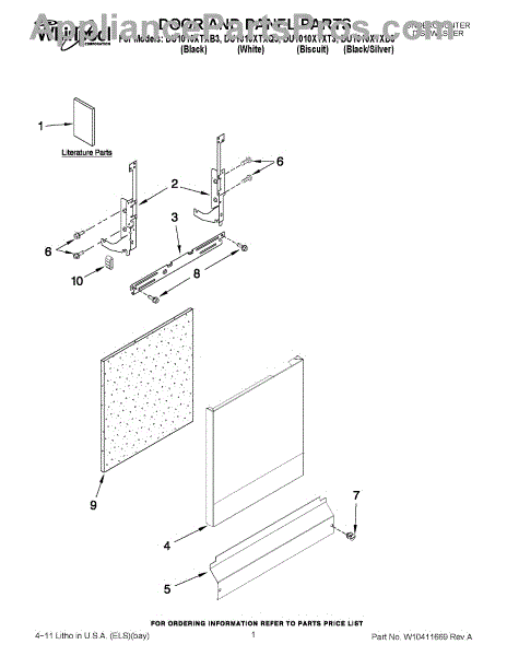 Parts for Whirlpool DU1010XTXB3: 01 - Door And Panel Parts