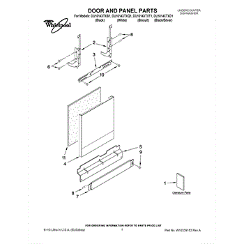 White front panel for dishwashers. Replaces cracked, dented, or damaged exterior panels. Installs with screws to restore your dishwasher's appearance.