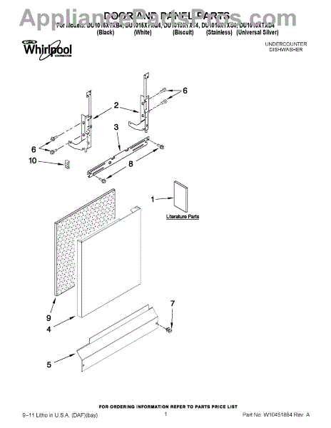 Parts for Whirlpool DU1015XTXD4: 01 - Door And Panel Parts
