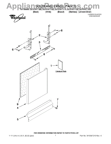 Parts for Whirlpool DU1015XTXT0: 01 - Door And Panel Parts