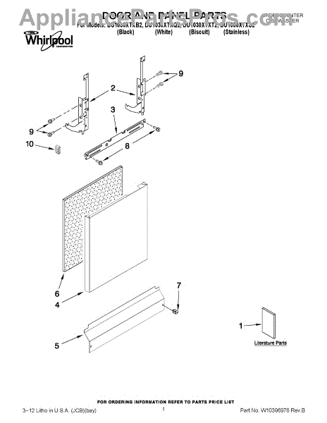 Parts for Whirlpool DU1030XTXQ2: 01 - Door And Panel Parts