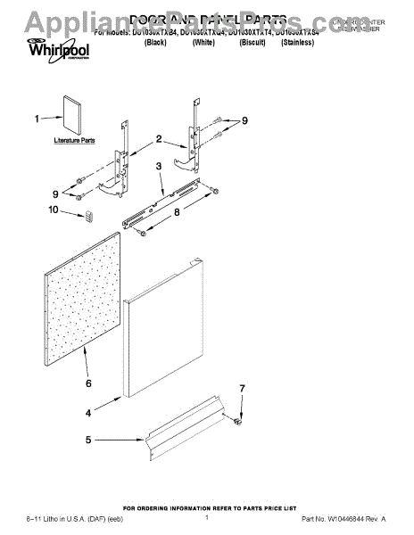 Parts for Whirlpool DU1030XTXQ4: 01 - Door And Panel Parts