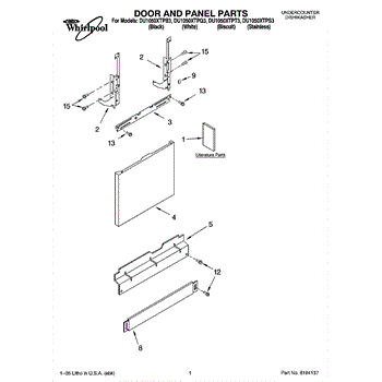 Parts for Whirlpool DU1050XTPQ3: 01 - Door And Panel Parts