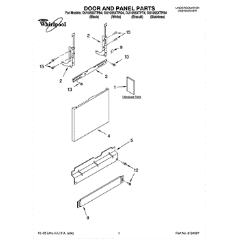 Parts for Whirlpool DU1055XTPQ4: 01 - Door And Panel Parts