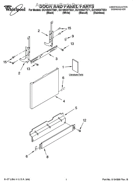 Parts for Whirlpool DU1055XTSB1: 01 - Door And Panel Parts