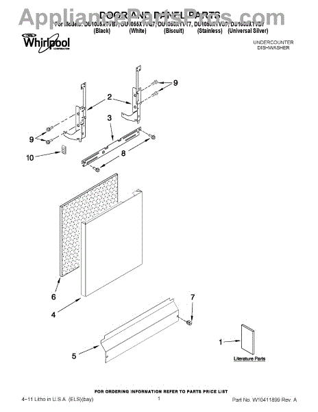 Parts for Whirlpool DU1055XTVD7: 01 - Door And Panel Parts