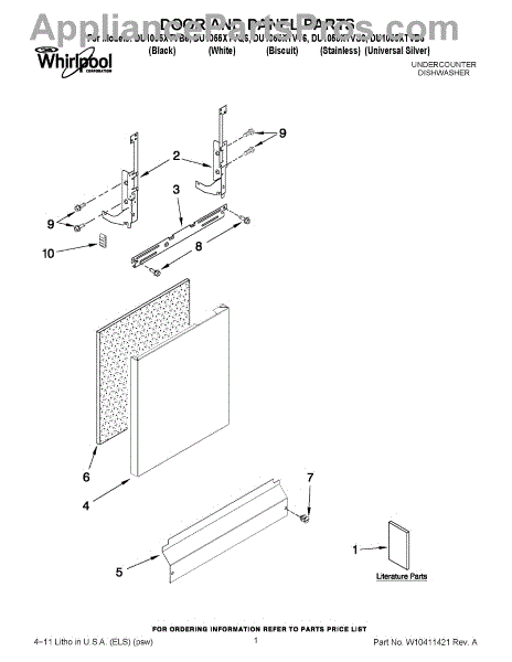 Parts for Whirlpool DU1055XTVS6: 01 - Door And Panel Parts