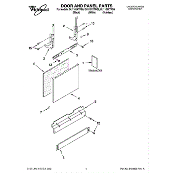 Parts for Whirlpool DU1101XTPQ9: 01 - Door And Panel Parts