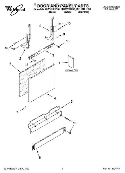 Parts for Whirlpool DU1101XTPS8: 01 - Door And Panel Parts