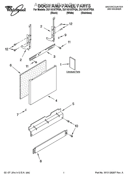 Parts for Whirlpool DU1101XTPSA: 01 - Door And Panel Parts