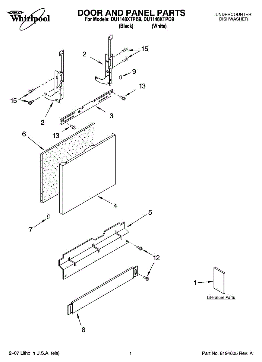 Color: Black. Screw for lower toe panel. For Biscuit screw use 3400865, for white screw use WP3400836.