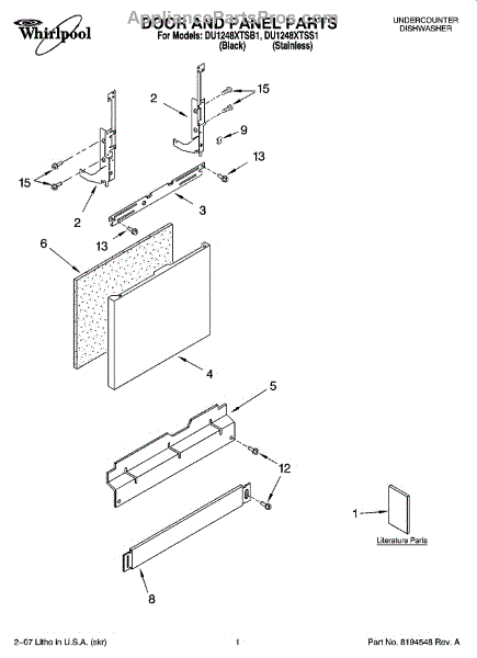 Parts for Whirlpool DU1248XTSB1: 01 - Door And Panel Parts