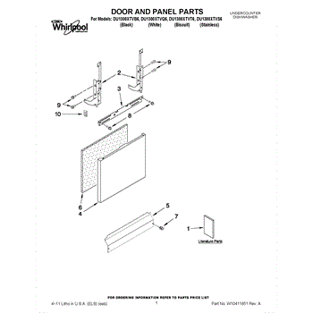 Parts for Whirlpool DU1300XTVB6: 01 - Door And Panel Parts