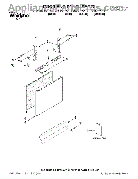 Parts for Whirlpool DU1300XTVS8: 01 - Door And Panel Parts