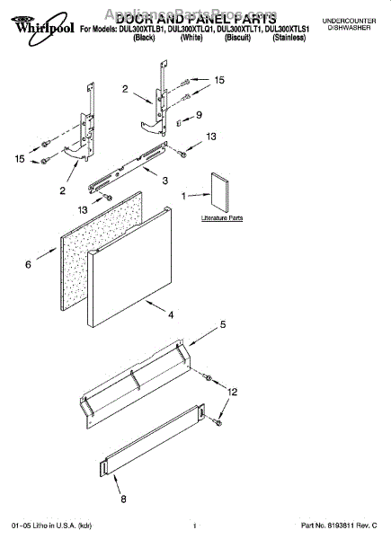 Parts for Whirlpool DUL300XTLS1: 01 - Door And Panel Parts