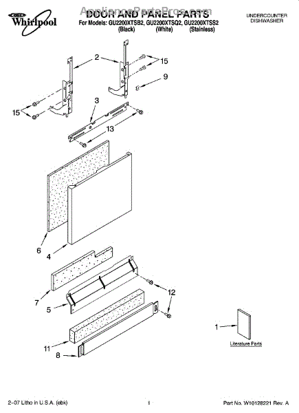 Parts for Whirlpool GU2200XTSS2: 01 - Door And Panel Parts