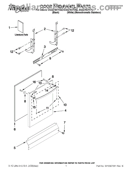 Parts for Whirlpool GU2275XTVY2: 01 - Door And Panel Parts