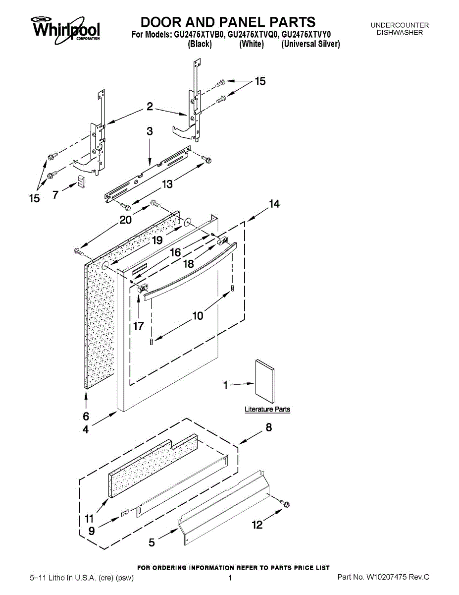 Replacement dishwasher panel that covers and protects internal components. Install to replace a dented, cracked, worn, or missing panel piece.