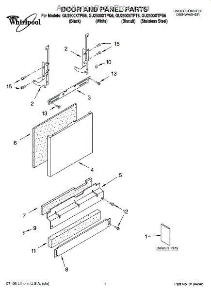 Parts for Whirlpool GU2500XTPB6: 01 - Door And Panel Parts