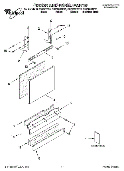 Parts for Whirlpool GU2500XTPQ3: 01 - Door And Panel Parts