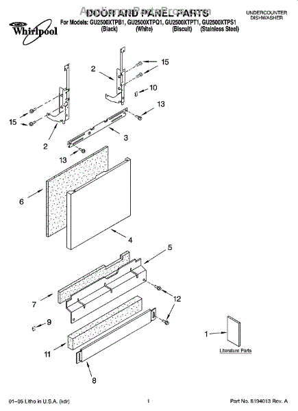 Parts for Whirlpool GU2500XTPS1: 01 - Door And Panel Parts
