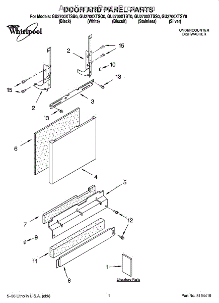 Color: Biscuit. Screw for lower toe panel. For black screw use WP302868, for white screw use WP3400836.