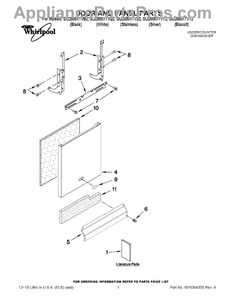 Parts for Whirlpool GU2800XTVQ2: 01 - Door And Panel Parts
