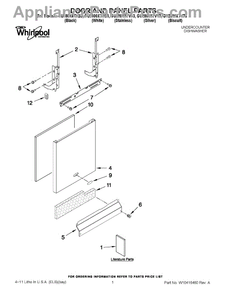 Parts for Whirlpool GU2800XTVS3: 01 - Door And Panel Parts