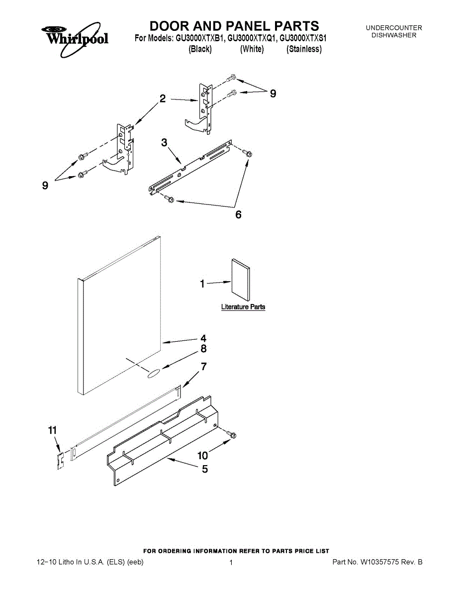 Color: Black. Screw for lower toe panel. For Biscuit screw use 3400865, for white screw use WP3400836.