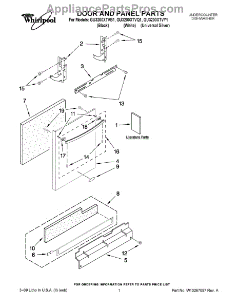 Parts for Whirlpool GU3200XTVQ1: 01 - Door And Panel Parts