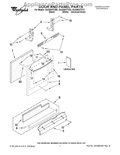 Parts for Whirlpool GU3200XTVQ2: 01 - Door And Panel Parts