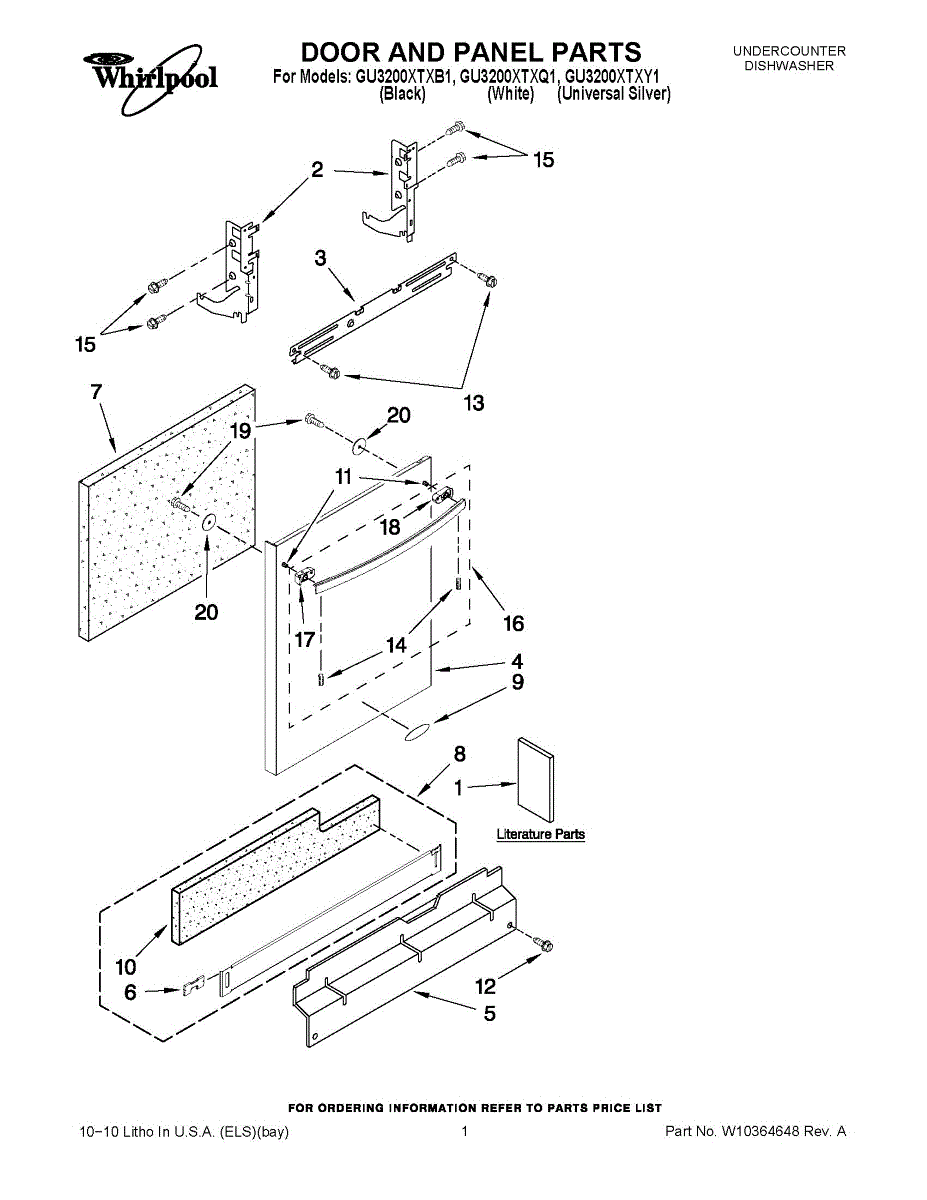 Parts for Whirlpool GU3200XTXB1: 01 - Door And Panel Parts