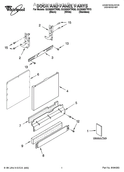 Parts for Whirlpool GU3600XTRY0: 01 - Door And Panel Parts