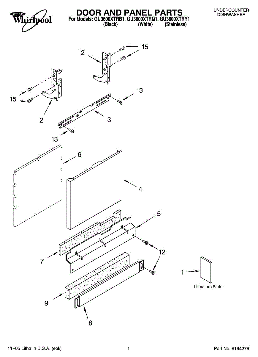 Color: Black. Screw for lower toe panel. For Biscuit screw use 3400865, for white screw use WP3400836.