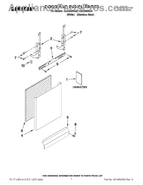 White outer door panel for dishwashers. Replaces cracked, dented, discolored, or mismatched front panels. Updates appearance and covers damage.