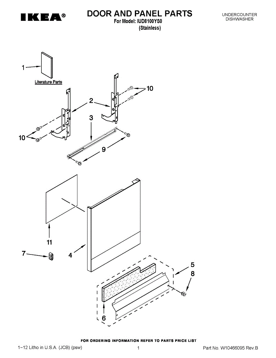 Stainless steel front door panel for dishwashers. Installs on outer door surface. Replace if cracked, dented, discolored, or when updating kitchen aesthetics.
