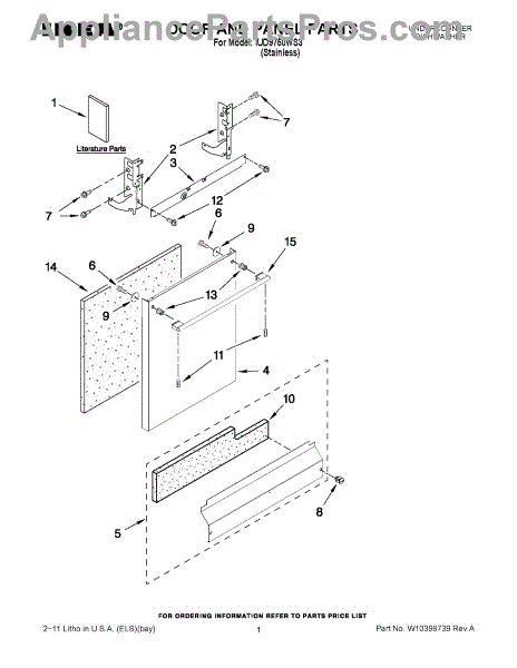 The Panel (BLK) is an OEM part for Whirlpool dishwashers. This black exterior panel is designed to provide a sleek and durable front surface for the dishwasher, enhancing its appearance and protecting internal components.