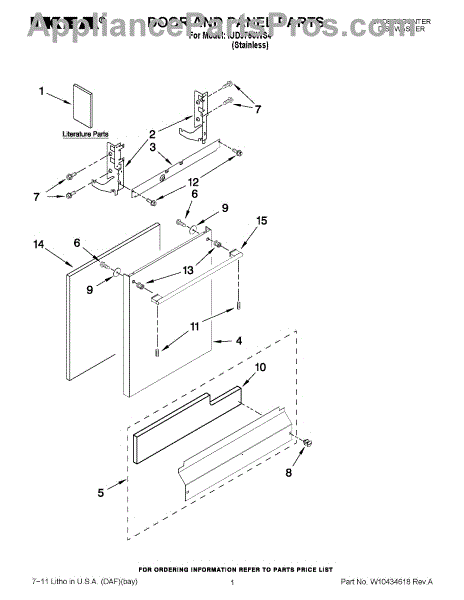 The Panel (BLK) is an OEM part for Whirlpool dishwashers. This black exterior panel is designed to provide a sleek and durable front surface for the dishwasher, enhancing its appearance and protecting internal components.