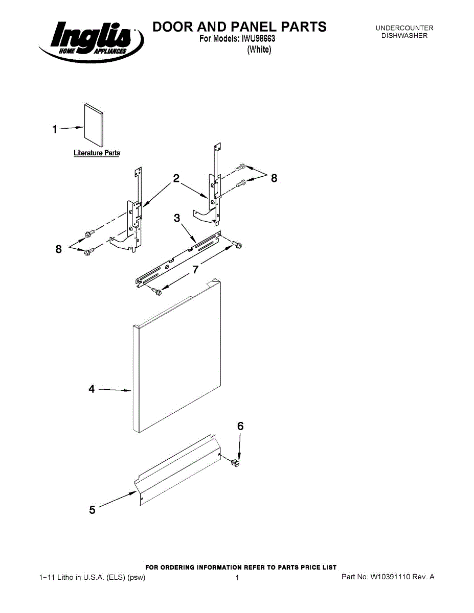 White outer door panel for dishwashers. Replaces cracked, dented, discolored, or mismatched front panels. Updates appearance and covers damage.