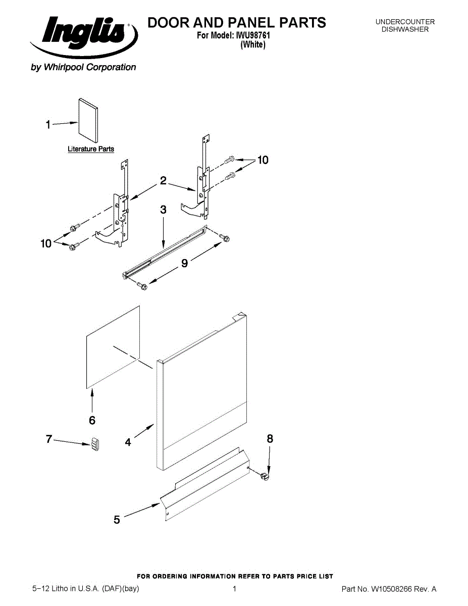 Parts for Whirlpool IWU98761: 01 - Door And Panel Parts