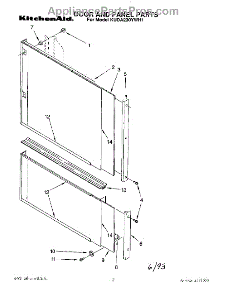 Parts for Kitchenaid KUDA230YAL1: 01 - Door And Panel Parts