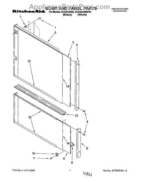 Parts for Kitchenaid KUDA23HB0: 01 - Door And Panel Parts