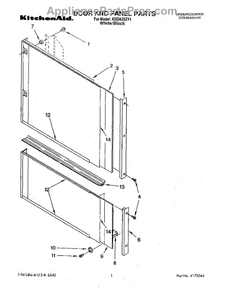 Parts for Kitchenaid KUDA23ZY1: 01 - Door And Panel Parts