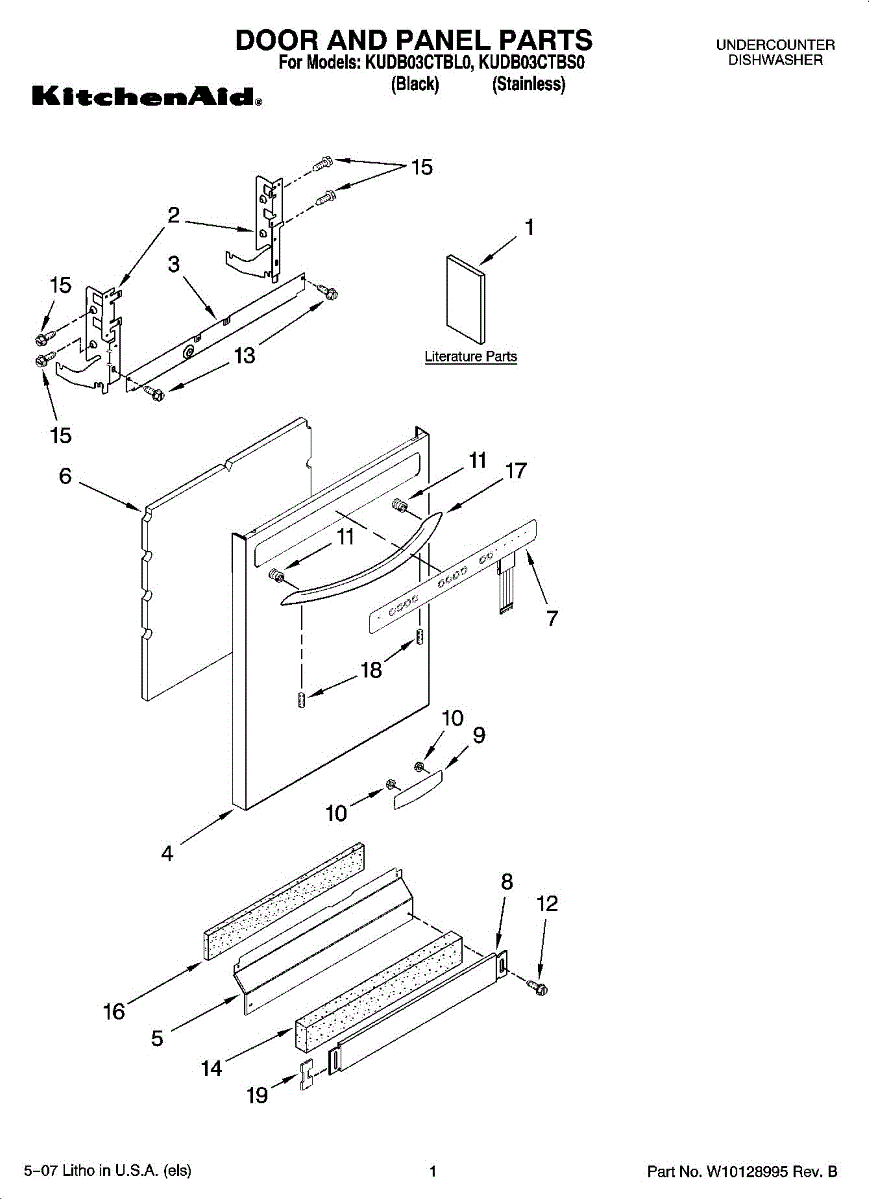 Parts for Kitchenaid KUDB03CTBS0: 01 - Door And Panel Parts