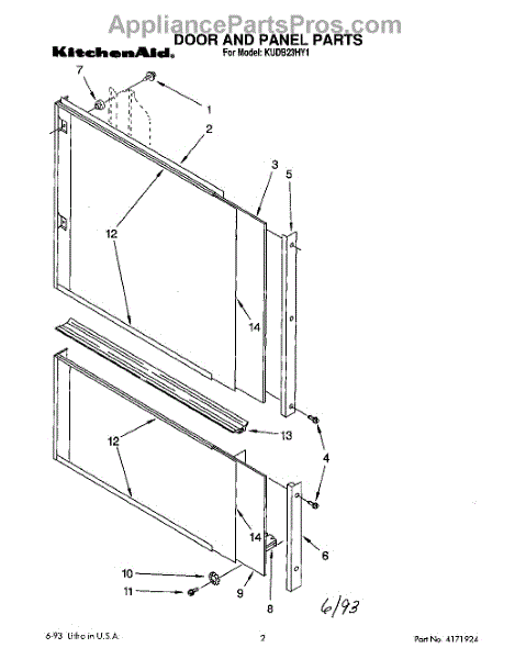 Parts for Kitchenaid KUDB23HY1: 01 - Door And Panel Parts
