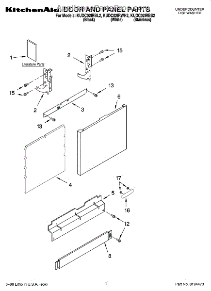 Parts for Kitchenaid KUDC02IRBL2: 01 - Door And Panel Parts