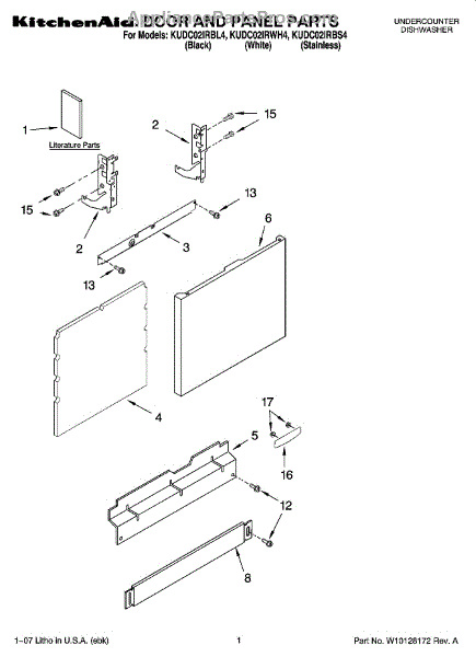 Parts for Kitchenaid KUDC02IRBS4: 01 - Door And Panel Parts
