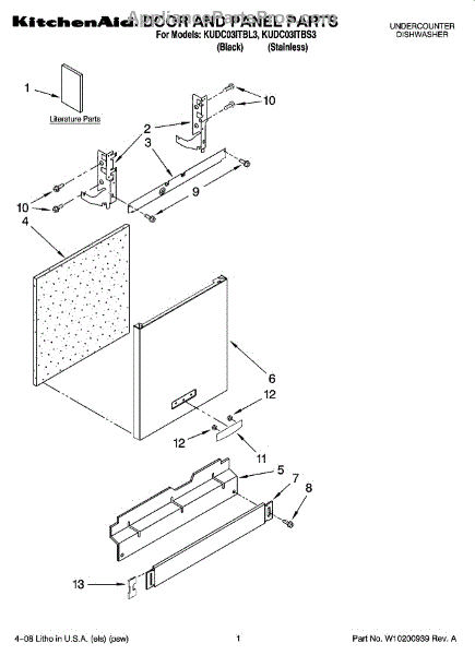 Parts for Kitchenaid KUDC03ITBS3: 01 - Door And Panel Parts